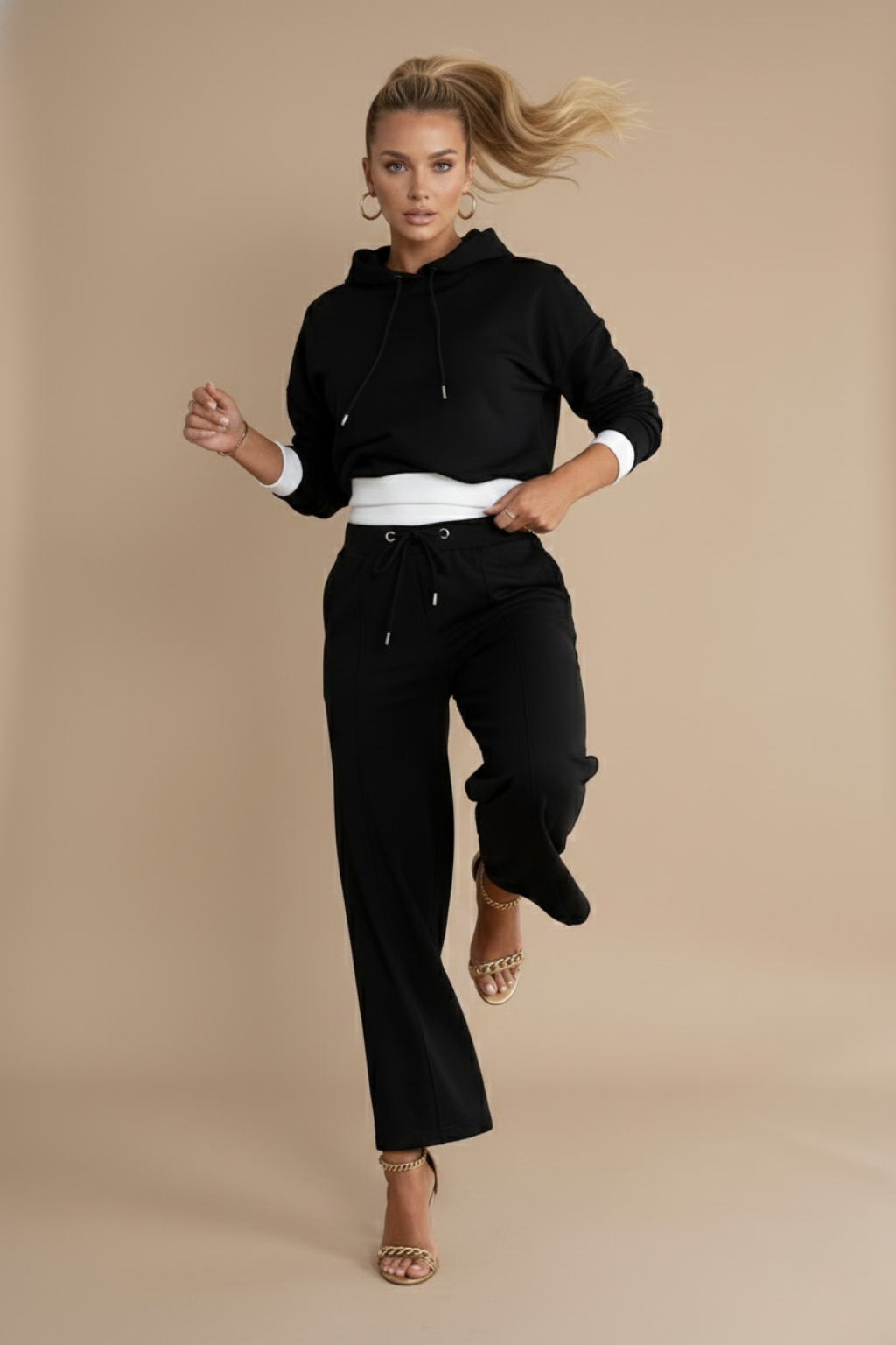 Conjunto de chándal de dos piezas para mujer con sudadera con capucha - Pantalones de pierna ancha - Atuendo coordinado de ajuste relajado