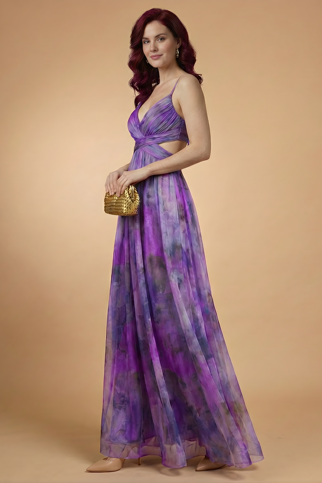 A flowing silhouette designed to feel light, feminine, and effortlessly refined. The V neckline creates a flattering frame through the shoulders, while the softly shaped waist draws the eye inward before releasing into a sweeping maxi length. Finished with a painterly floral pattern, it’s made for moments that call for romance, movement, and quiet confidence.