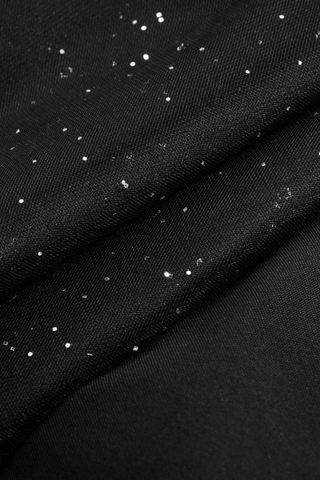 Designed to deliver impact with minimal effort. The deep V neckline creates a striking frame through the upper body, balanced by sheer long sleeves that add subtle allure and visual depth. A defined waist flows into wide leg trousers that elongate the silhouette, making this jumpsuit an effortless choice for evenings that call for confidence and polish.