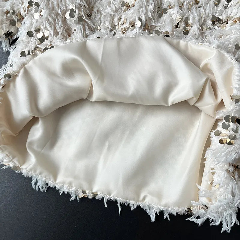 Women’s Embellished Feather-Effect Blouse with Sequin Detail – Refined Evening Style
