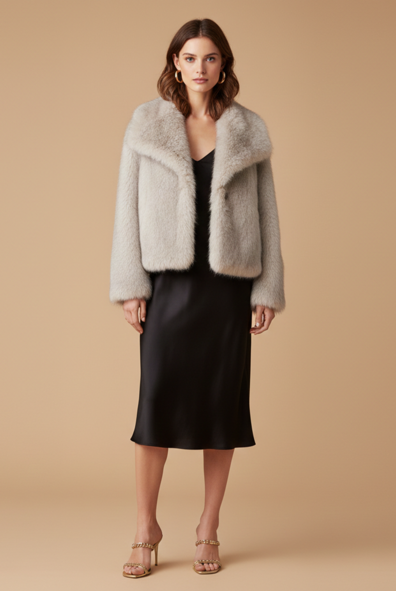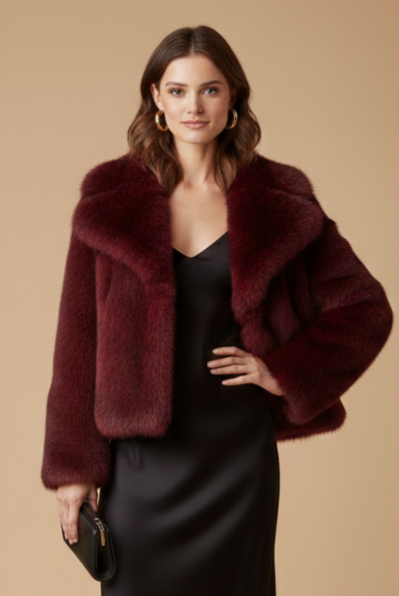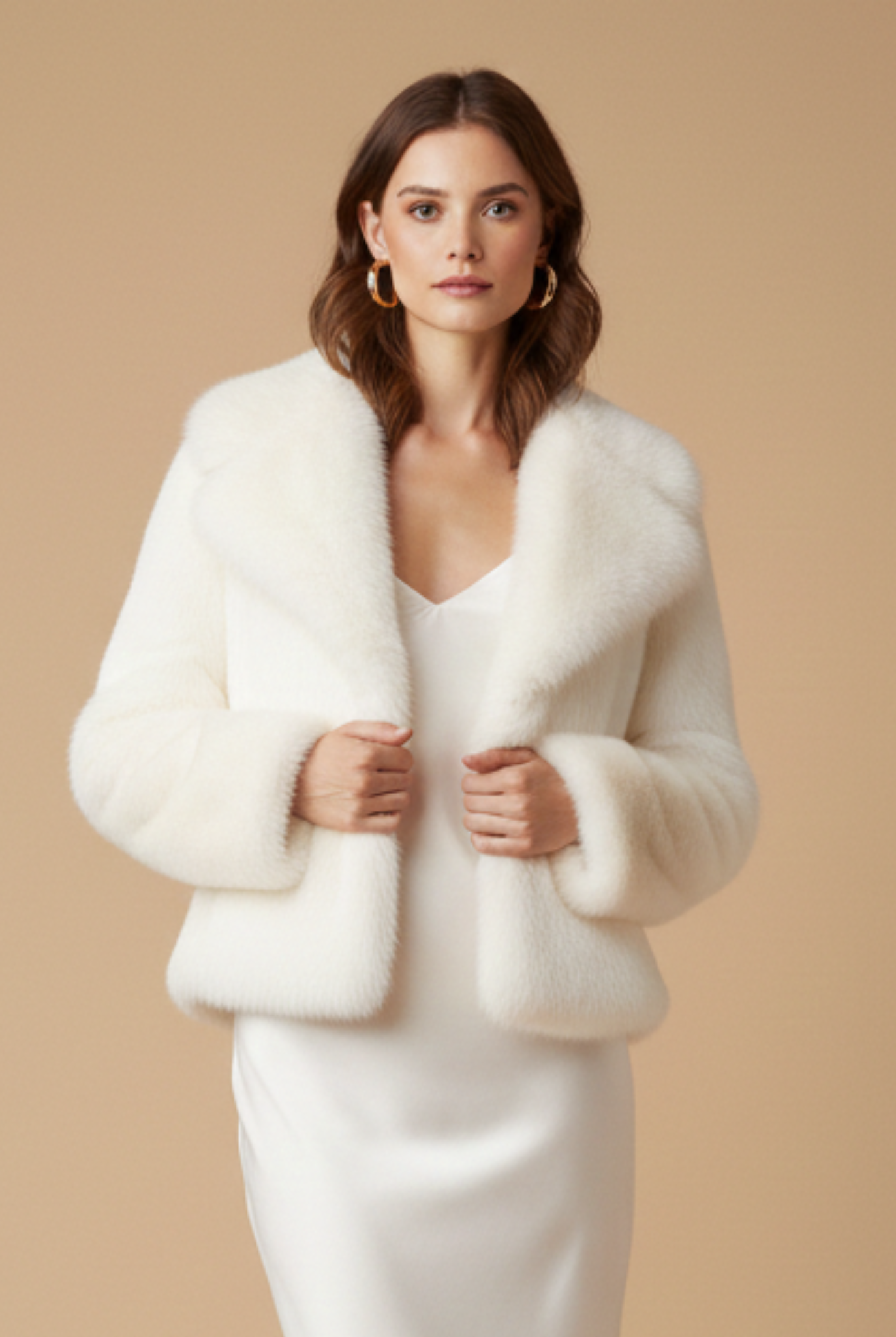 Women’s Short Pile Jacket - Faux Fur - Cropped Length - Long Sleeve - Open Front Design